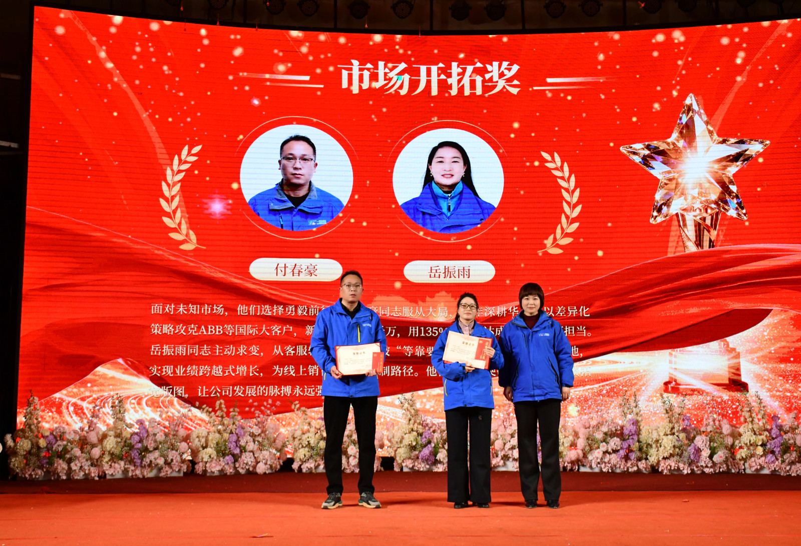 年會的榮耀時刻,屬于每一位奮斗的一通人。表彰頒獎環節,公司領導為獲獎員工與團隊頒發獎金和榮譽證書,獲獎員工與團隊代表發表工作感言,臺上星光熠熠,臺下掌聲雷動,這是對過往汗水的最佳褒獎,也是對榜樣力量的崇高致敬。