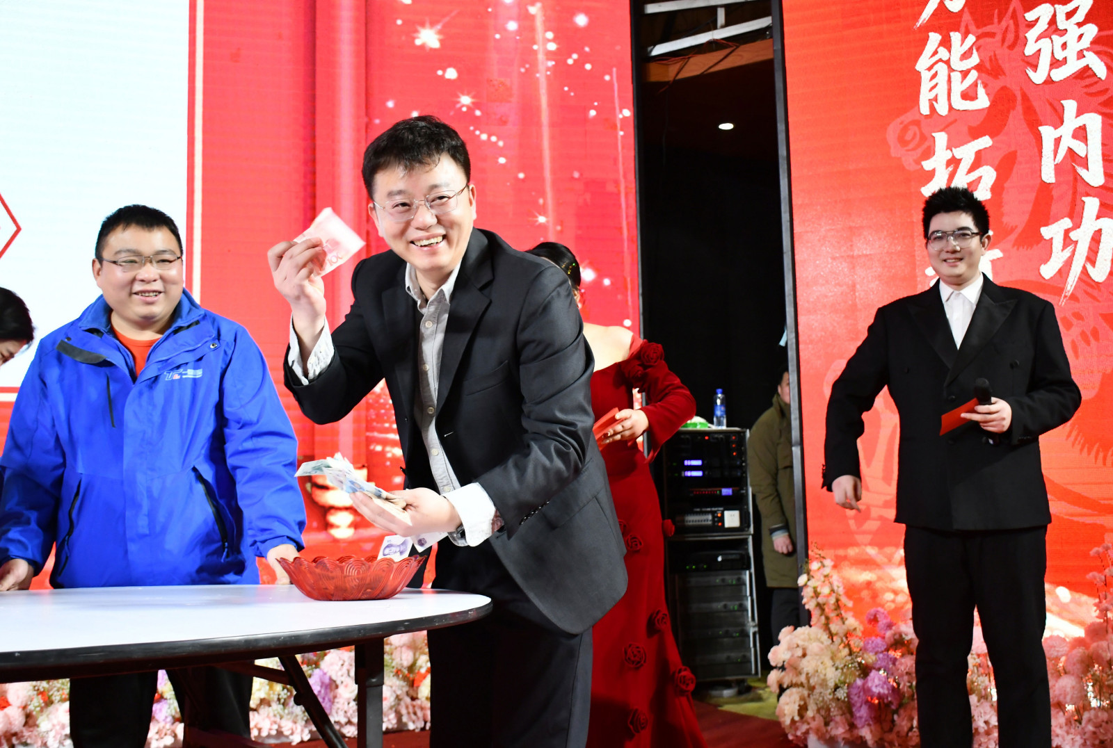 年會最激動人心的環節,當屬貫穿全場的多輪抽獎!一份份豐厚的獎品,不僅是公司對員工們的關懷與回饋,更承載著對大家新一年 “馬到成功、萬事順遂”的美好祝福。輪番來襲的紅包驚喜和“蒙眼抄錢”互動游戲,更是將年會的熱烈氛圍一次次推向高潮。