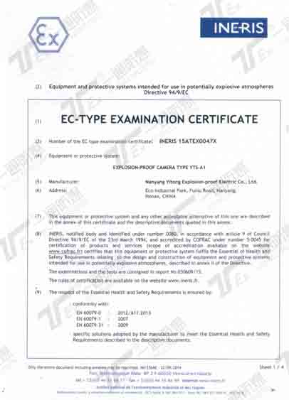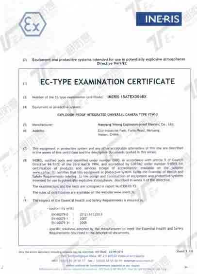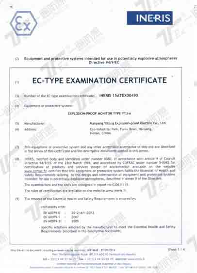 ATEX(歐測國際認證)證書